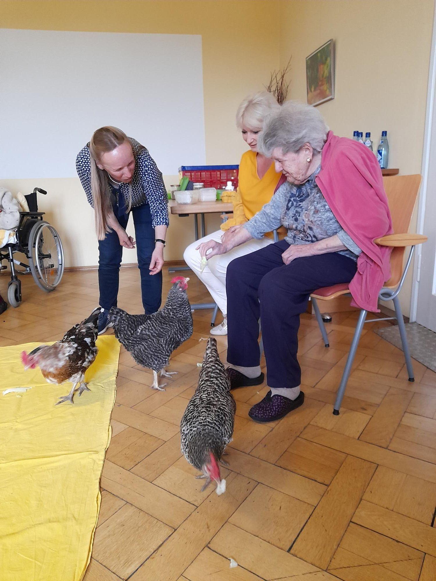 Viele Bewohnerinnen und Bewohner tauschten sich über ihre Erinnerungen und die eigenen Hühner von Früher aus.